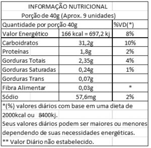 Farinha de trigo enriquecida com ferro e ácido fólico, açúcar, gordura vegetal hidrogenada, amido de milho, sal, fermento químico (bicabornato de sódio, bicabornato de amônia) chocolate em pó, lecitina de soja e aroma artificial de chocolate.