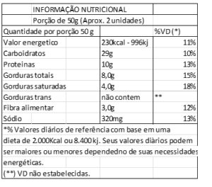 Farinha de trigo enriquecida com ferro e ácido fólico, margarina vegetal, ovos em pó, açúcar, fermento químico, açúcar de baunilha.